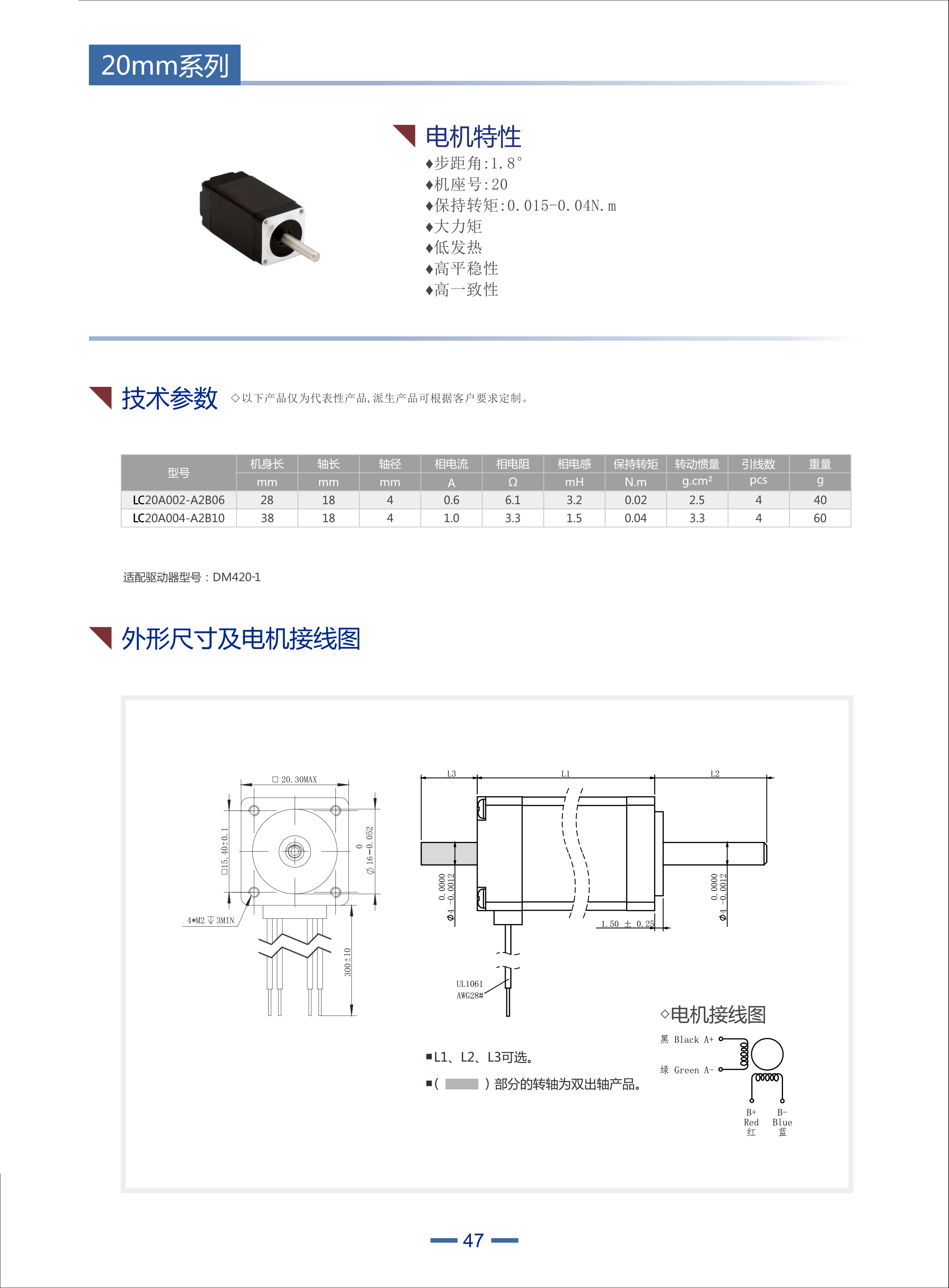 20步進(jìn)電機(jī)特性:步距角:1.8,機(jī)座號(hào):20,保持轉(zhuǎn)矩:0.015-0.04N.m,大力矩低發(fā)熱,高平穩(wěn)性,高一致性