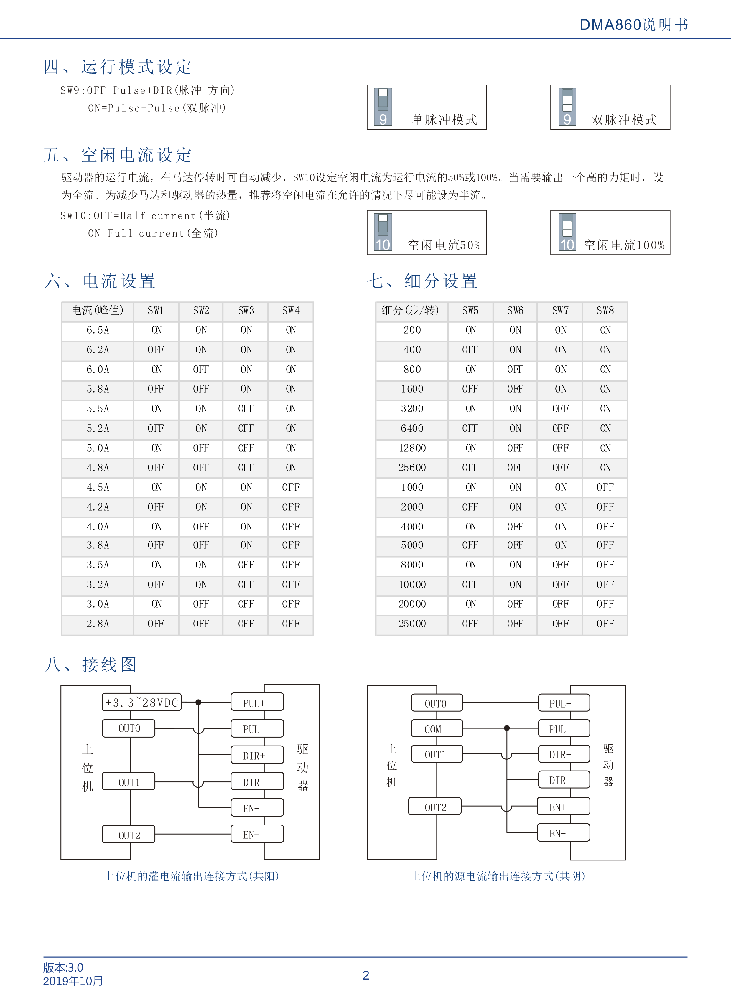 DMA860是立成公司最新研制的基于新一代基于32位DSP技術(shù)的高性能兩相數(shù)字式步進(jìn)驅(qū)動(dòng)器,驅(qū)動(dòng)電壓24-80VAC,適配電流 6.5A以下,外徑57~86mm的各種型號(hào)兩相混合式步進(jìn)電機(jī)。該驅(qū)動(dòng)器采樣類似伺服的控制原理,獨(dú)特的電路設(shè)計(jì),優(yōu)越的軟件算法處理,使電機(jī)即使在低細(xì)分下也能運(yùn)行平穩(wěn),幾乎沒(méi)有振動(dòng)和噪音,平滑、精確地電流控制技術(shù)大大減少了電機(jī)發(fā)熱,外置16檔等角度恒力矩細(xì)分,最高25600細(xì)分,光耦隔離差分信號(hào)輸入,抗于擾能力強(qiáng),具有過(guò)壓、欠壓、過(guò)流保護(hù)等出錯(cuò)保護(hù)功能。在點(diǎn)膠機(jī)、激光雕刻等中、低速應(yīng)用領(lǐng)域,其平穩(wěn)性、振動(dòng)、噪聲性能優(yōu)勢(shì)明顯,可大大提高設(shè)備性能。