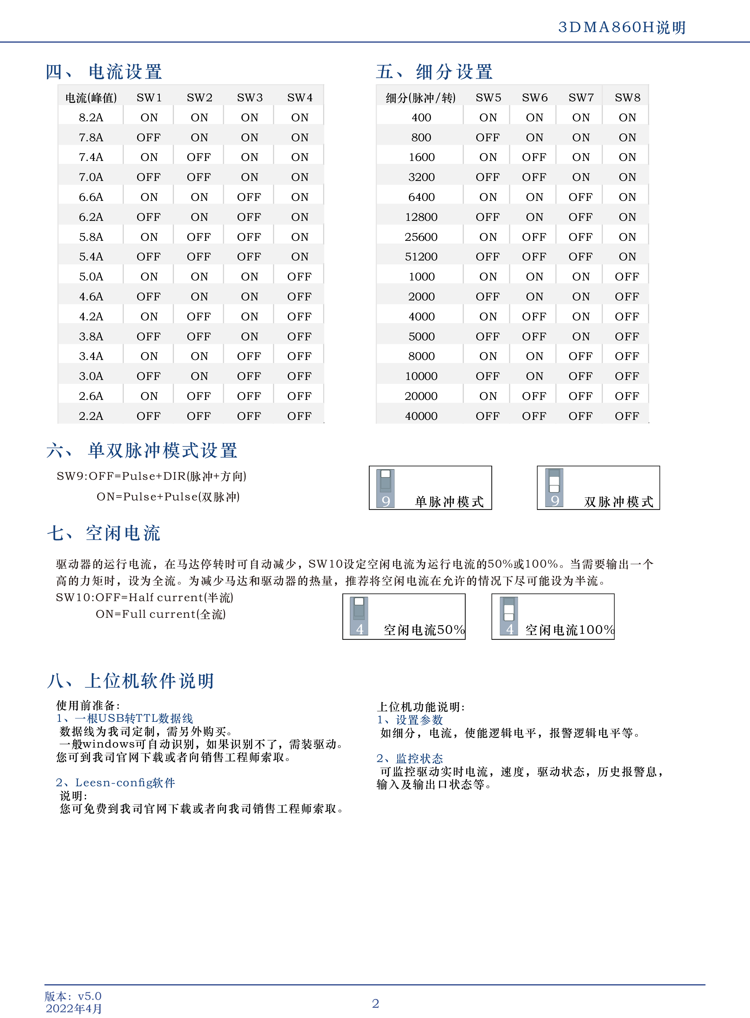 該驅(qū)動(dòng)器采樣類(lèi)似何服的控制原理,獨(dú)特的電路設(shè)計(jì),優(yōu)越的軟件算法處理,使電機(jī)即使在低細(xì)分下也能運(yùn)行平穩(wěn),幾乎沒(méi)有振動(dòng)和噪音,平滑、精確地電流控制技術(shù)大大減少了電機(jī)發(fā)熱,外置16檔等角度恒力矩細(xì)分,最高256細(xì)分,光耦隔離差分信號(hào)輸入,抗干擾能力強(qiáng),具有過(guò)壓、欠壓、過(guò)流保護(hù)等出錯(cuò)保護(hù)功能。可以通過(guò)上位機(jī)設(shè)置細(xì)分,電流,邏輯電平等參數(shù)。在中、低速,大力矩應(yīng)用領(lǐng)域,其平穩(wěn)性、振動(dòng)、噪聲性能優(yōu)勢(shì)明顯,可大大提高設(shè)備性能。