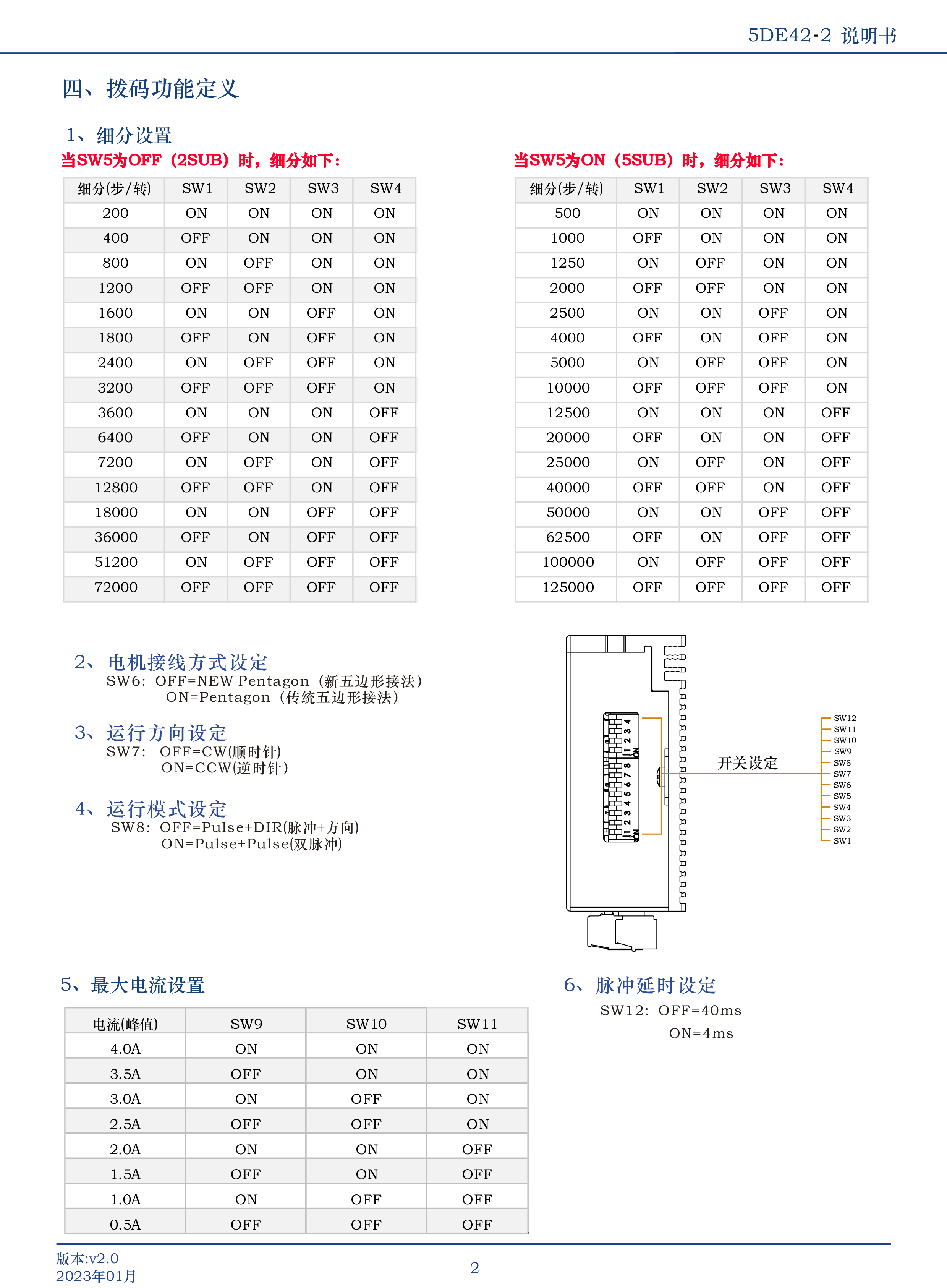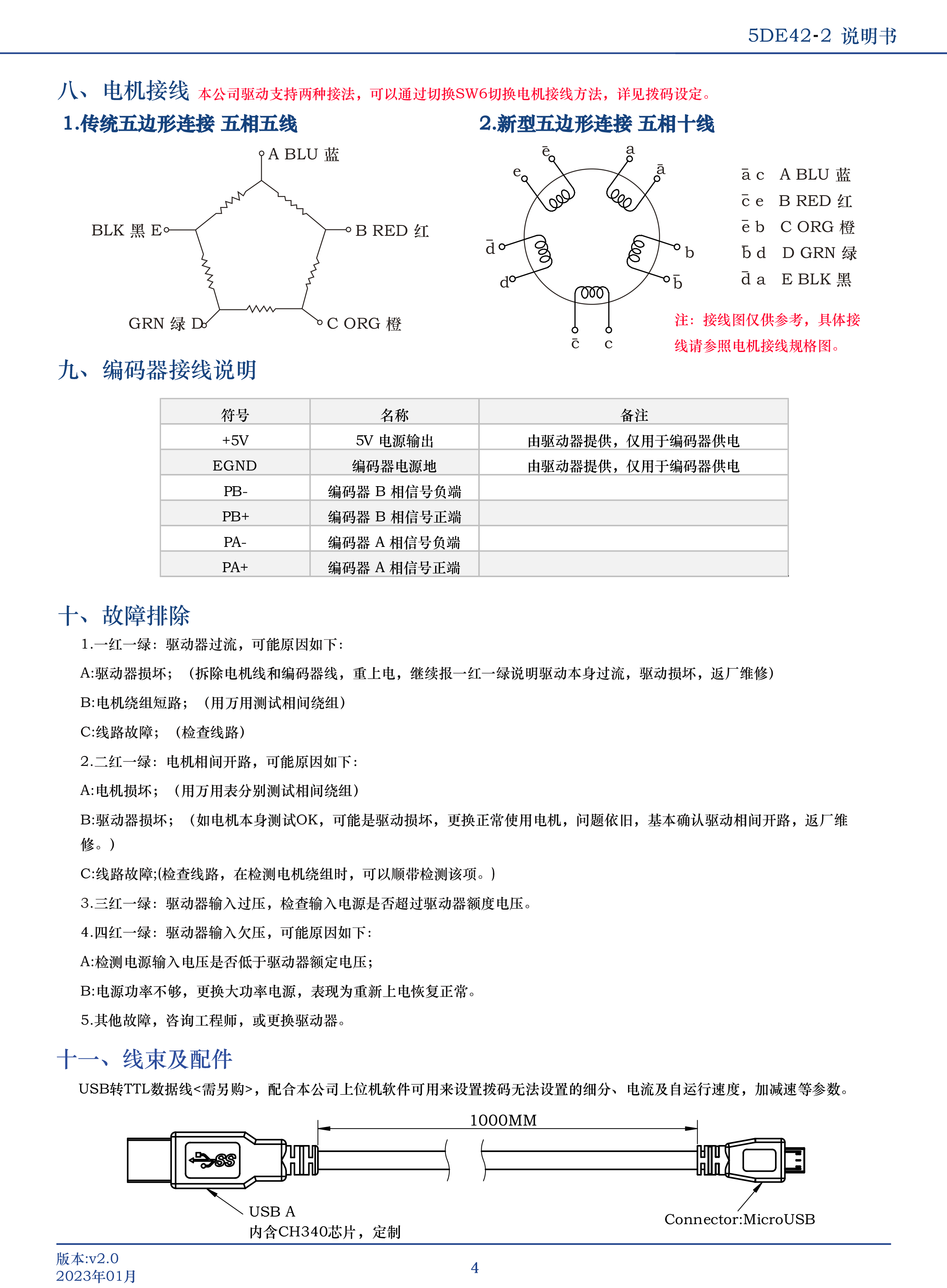 5DE42-2是我司潛心研制的新一代基于32位DSP技術(shù)的高性能兩相數(shù)字式步進驅(qū)動器,驅(qū)動電壓DC24V-60V,適配電流4.0A以下的各種型號五相混合式閉環(huán)步進電機。默認(rèn)匹配1000線編碼器電機,可通過上位機設(shè)置成其他編碼器線數(shù)。該驅(qū)動器采樣類似伺服的控制原理,獨特的電路設(shè)計,優(yōu)越的軟件算法處理,使電機即使在低細(xì)分下也能運行平穩(wěn),幾乎沒有振動和噪音,平滑、精確地電流控制技術(shù)大大減少了電機發(fā)熱,外置32檔等角度恒力矩細(xì)分,最高可調(diào)125000脈沖/轉(zhuǎn),光耦隔離差分信號輸入,抗干擾能力強,具有過壓、欠壓、過流保護等出錯保護功能。可以通過上位機設(shè)置200以上任意正整數(shù)細(xì)分,電流,邏輯電平等參數(shù)。在3C、LED貼片等中、高速應(yīng)用領(lǐng)域,其平穩(wěn)性、振動、噪聲性能優(yōu)勢明顯,可大大提高設(shè)備性能。
